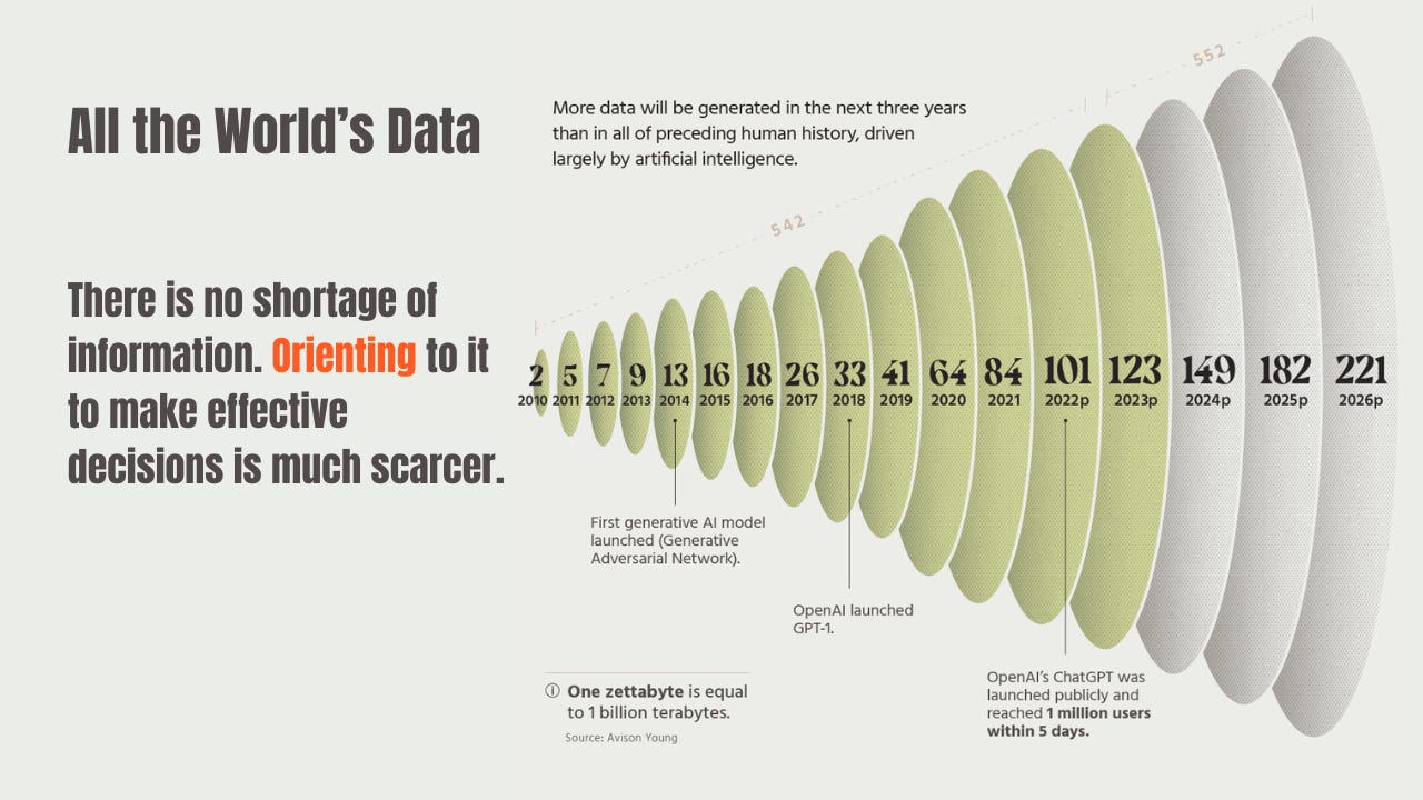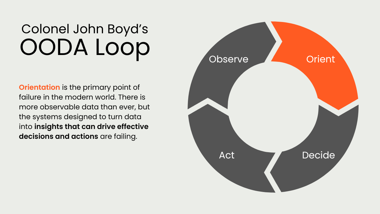 What unites these failures—at the individual and institutional level—is that they are rarely failures of information access. They are failures of orientation. Modern systems accumulate data faster than they can revise the models used to interpret it, leaving decision-makers unable to coordinate effective action even as informational capacity grows.